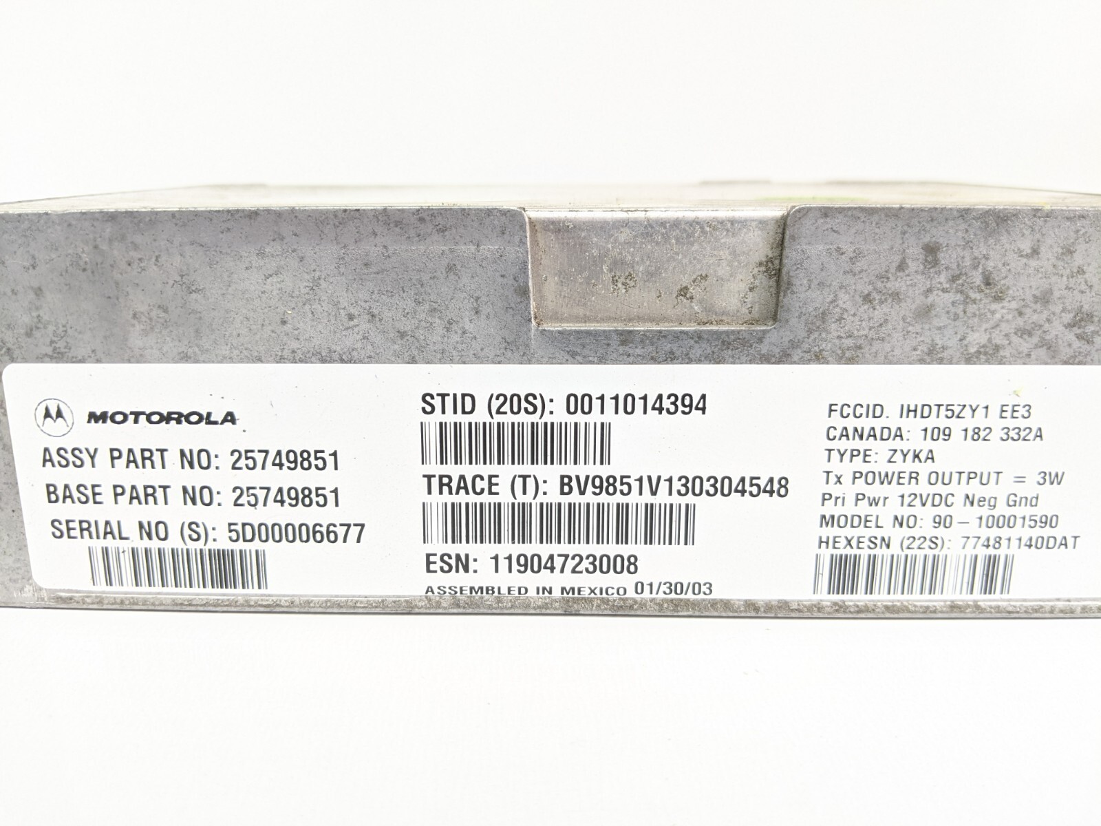 03-04 CADILLAC CTS MOTOROLA BLUETOOTH COMMUNICATION MODULE OEM TESTED 25749851