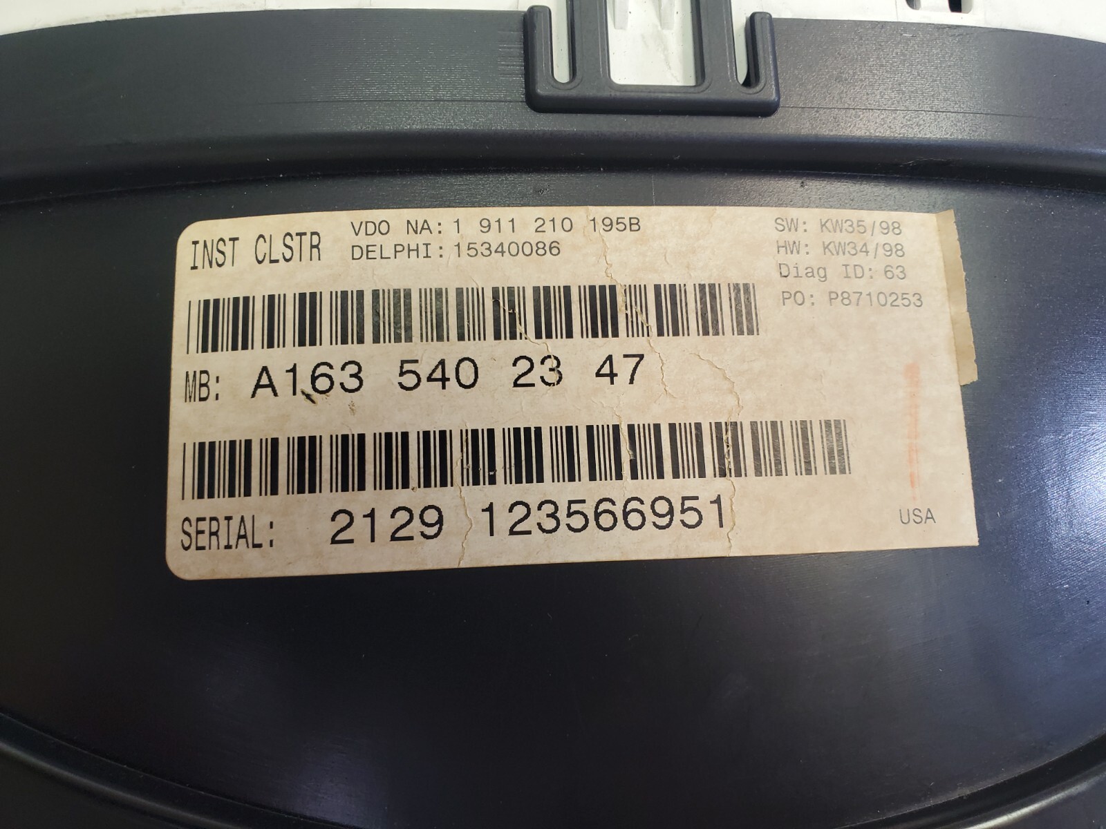 98-01 Mercedes W163 ML320 ML430 Instrument Cluster Speedometer 1635402811 203k