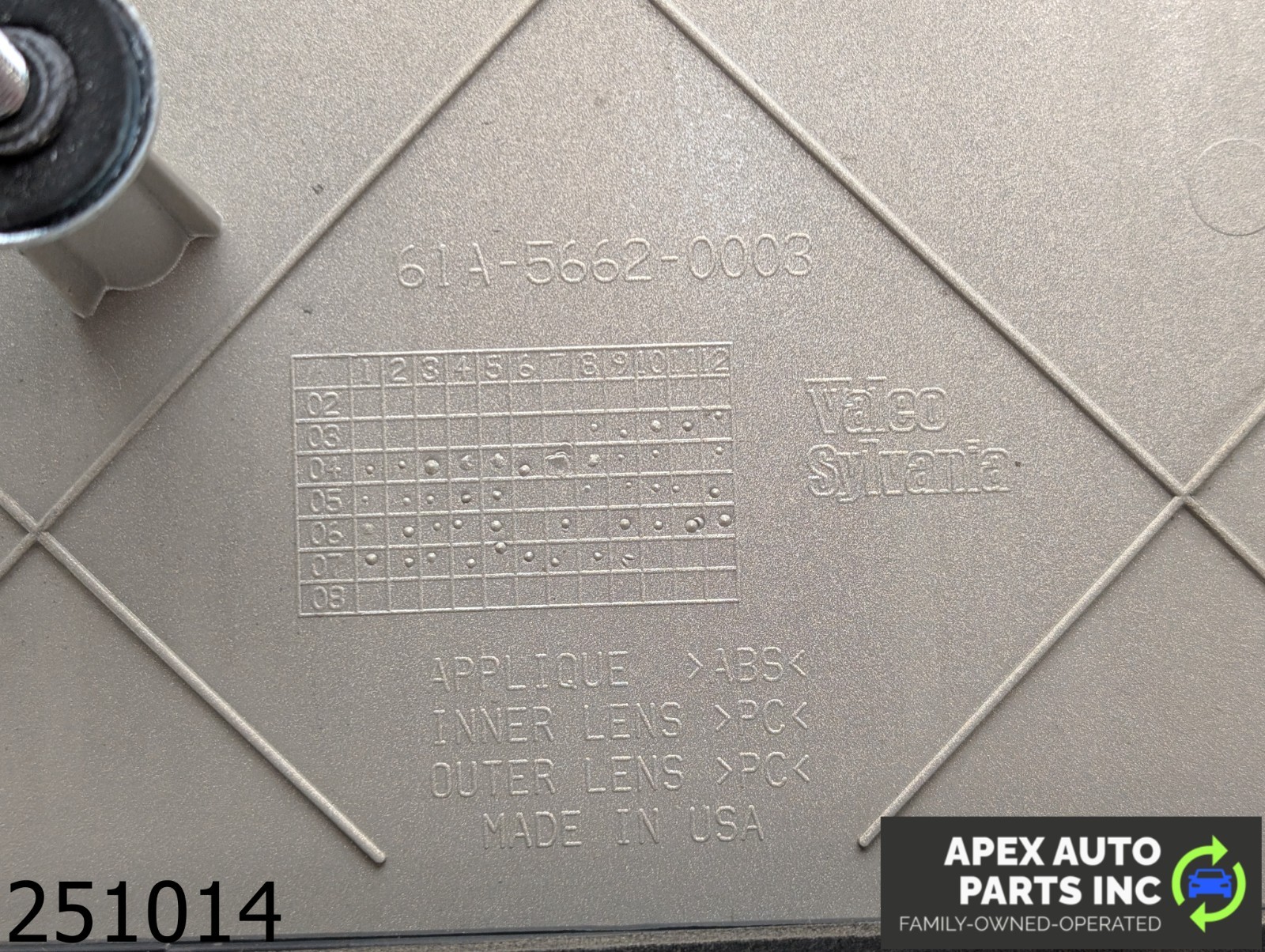 APEX AUTO PARTS INC is here to help you with your next parts order. Please let us know how we can help you today.