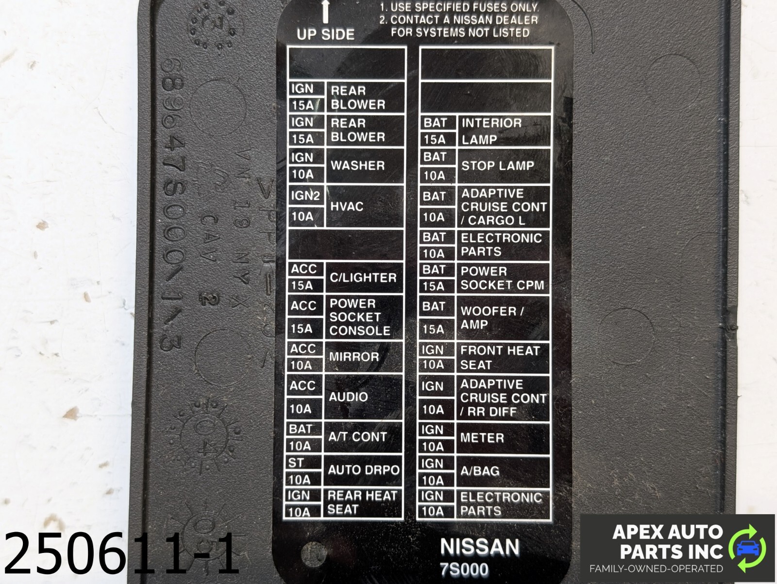 OEM 2004-2010 Infiniti QX56 5.6L Fuse Box Cover Lid Front Right Side Dashboard