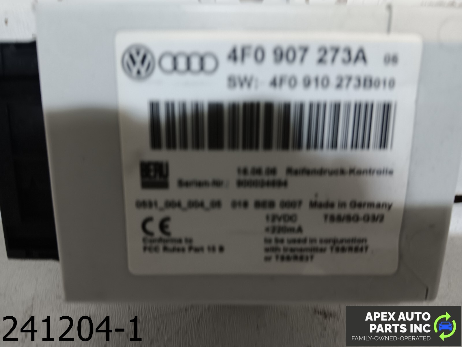 OEM 2005-2008 Audi A6 3.1L TIRE PRESSURE MODULE PART TPMS 4F0907273A