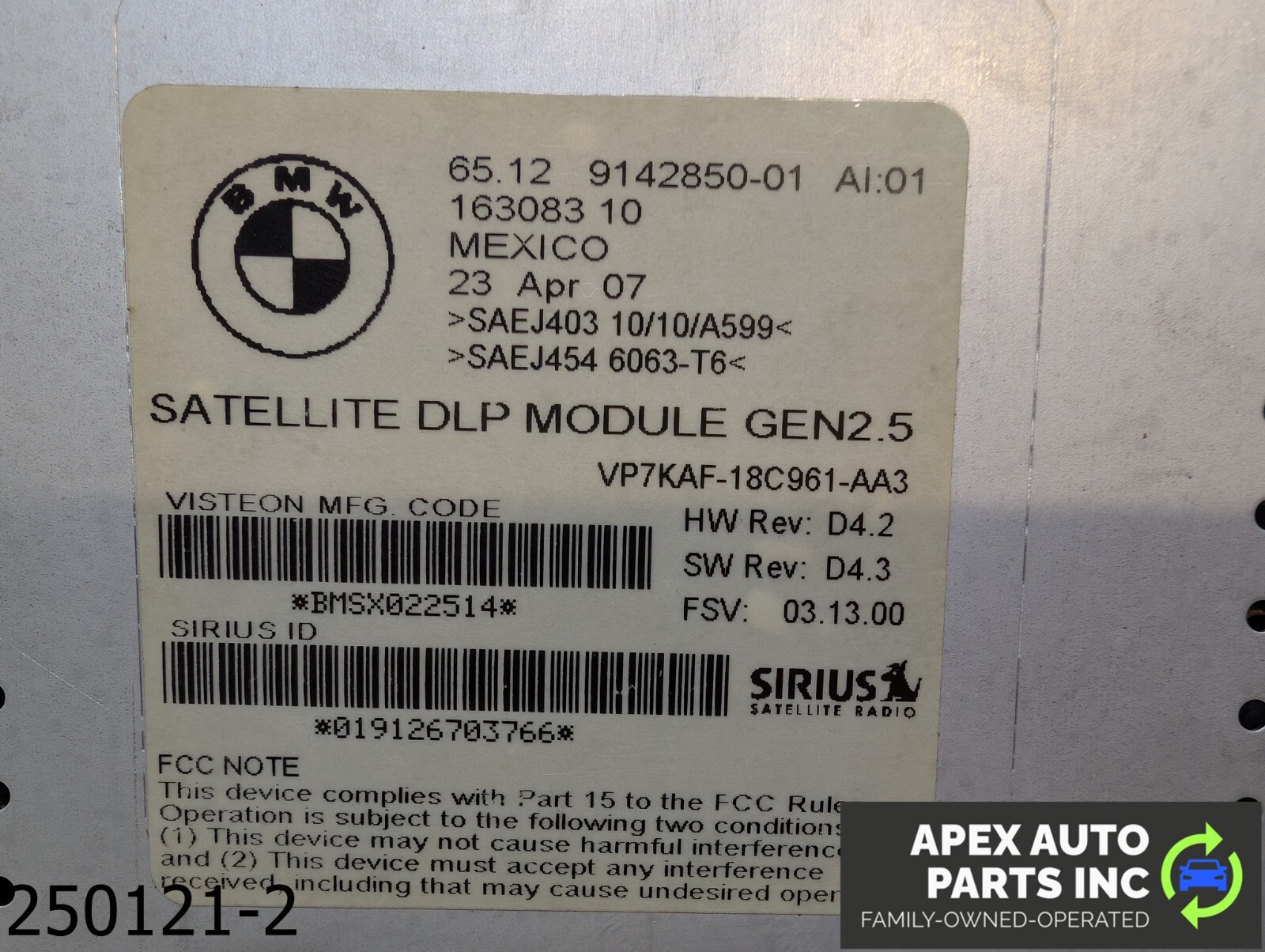 OEM 2006-2008 BMW 335XI 3.0L SIRRUS SATELLITE DLP MODULE
