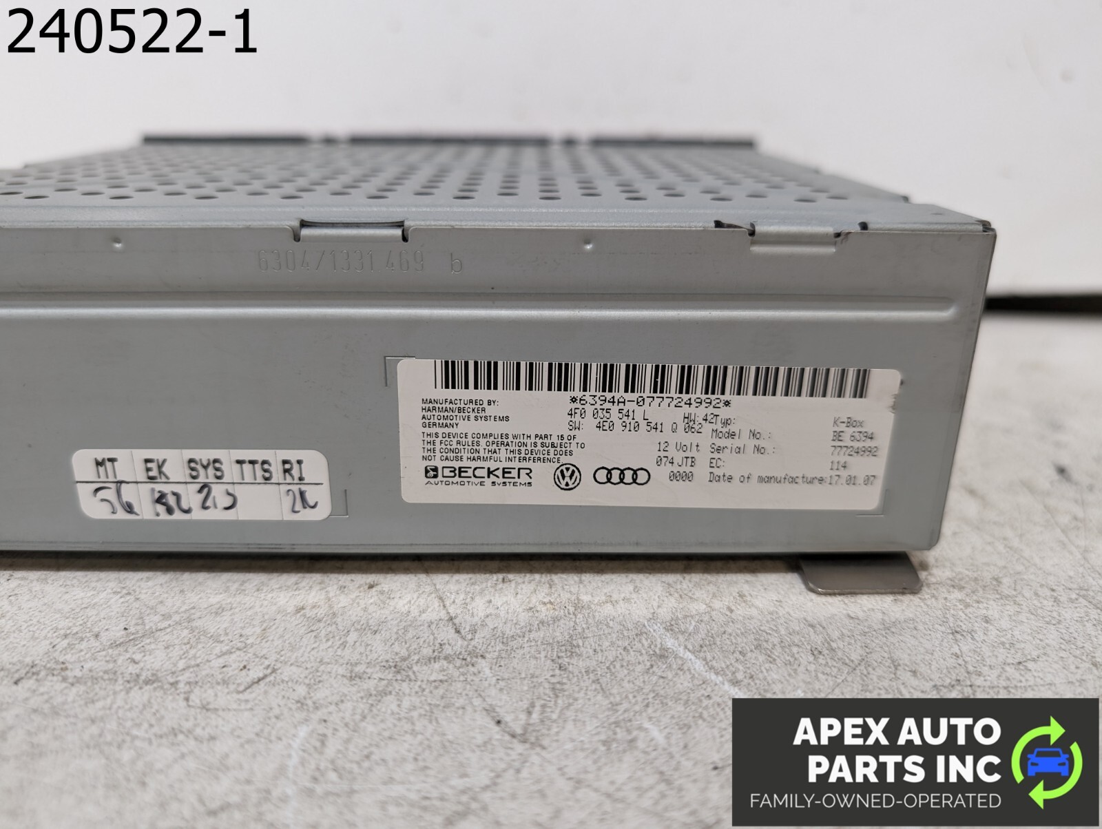 OEM 2007 Audi A6 3.1L Audio Radio Receiver ID 4F0035541L