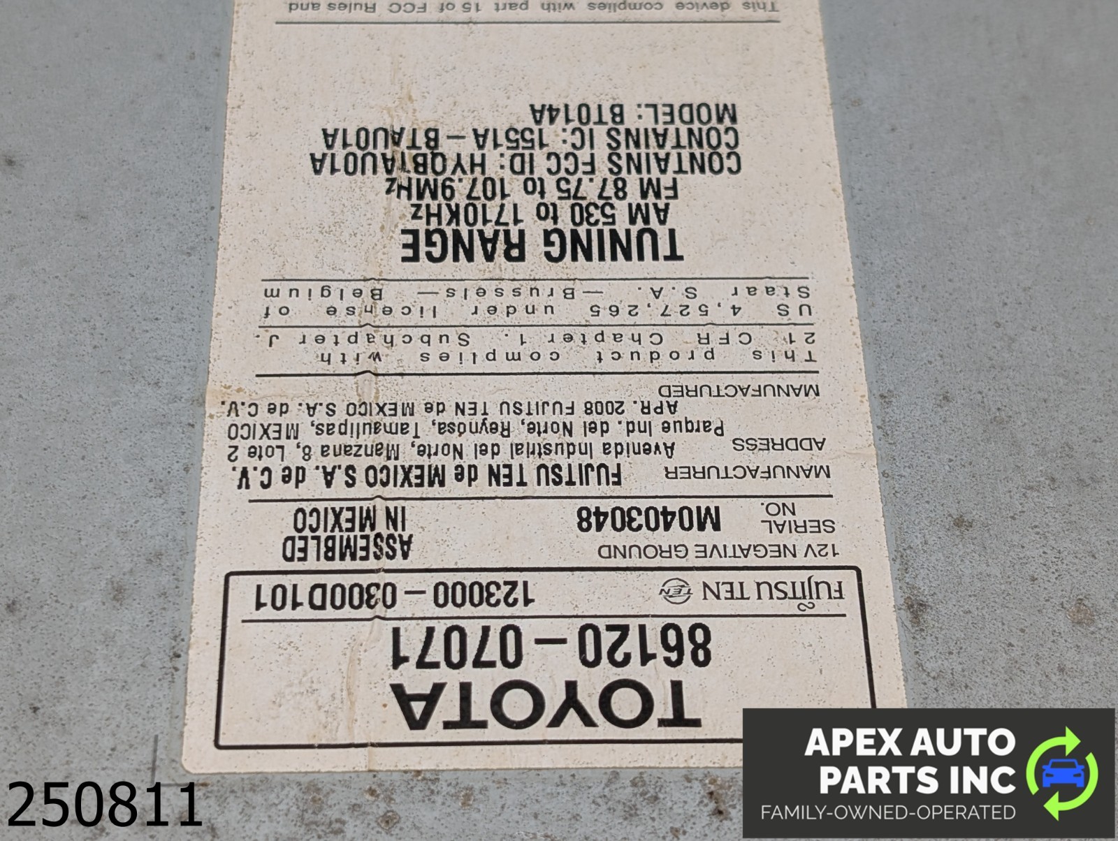 APEX AUTO PARTS INC is here to help you with your next parts order. Please let us know how we can help you today.