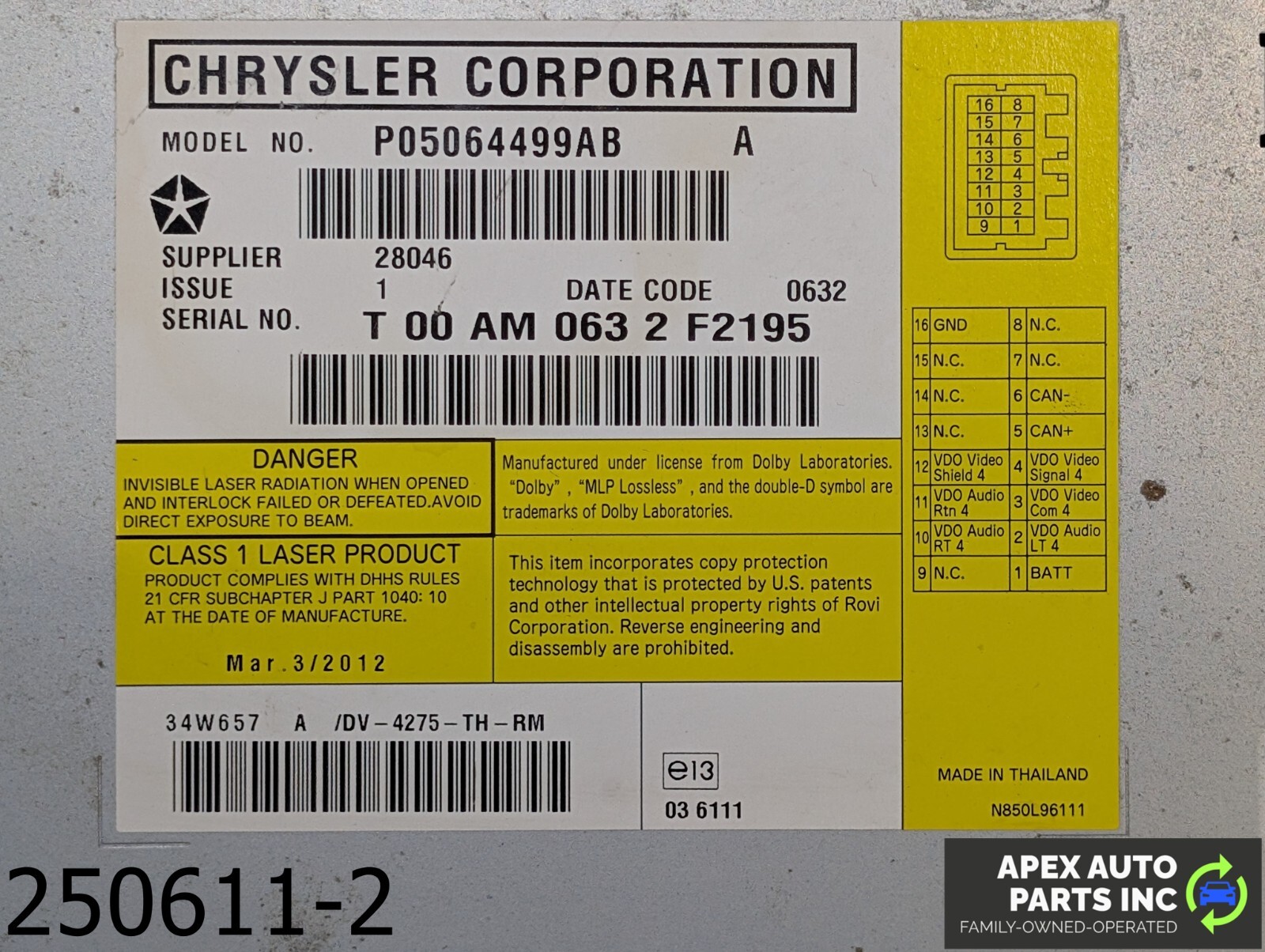 OEM 2009-2014 Volkswagen Routan 3.6L DVD Drive Player