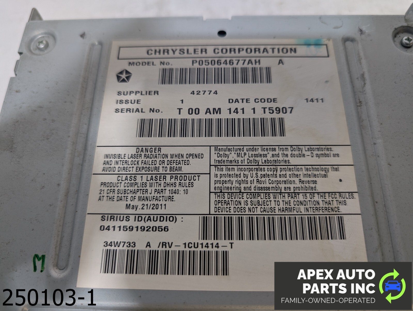OEM 2011-2014 Chrysler 200 2.4L JEEP Radio MP3 AM-FM CD