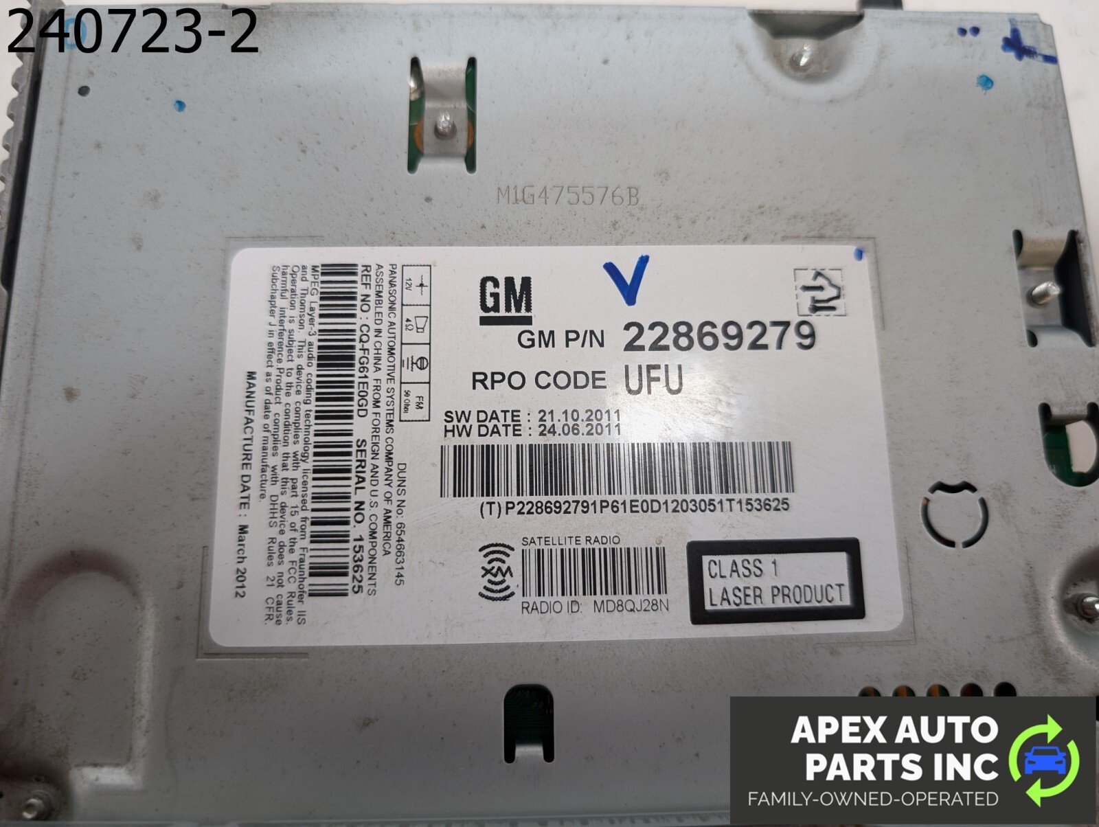 OEM 2012 GMC Terrain 2.4L 22869279 Radio/CD Receiver UFU