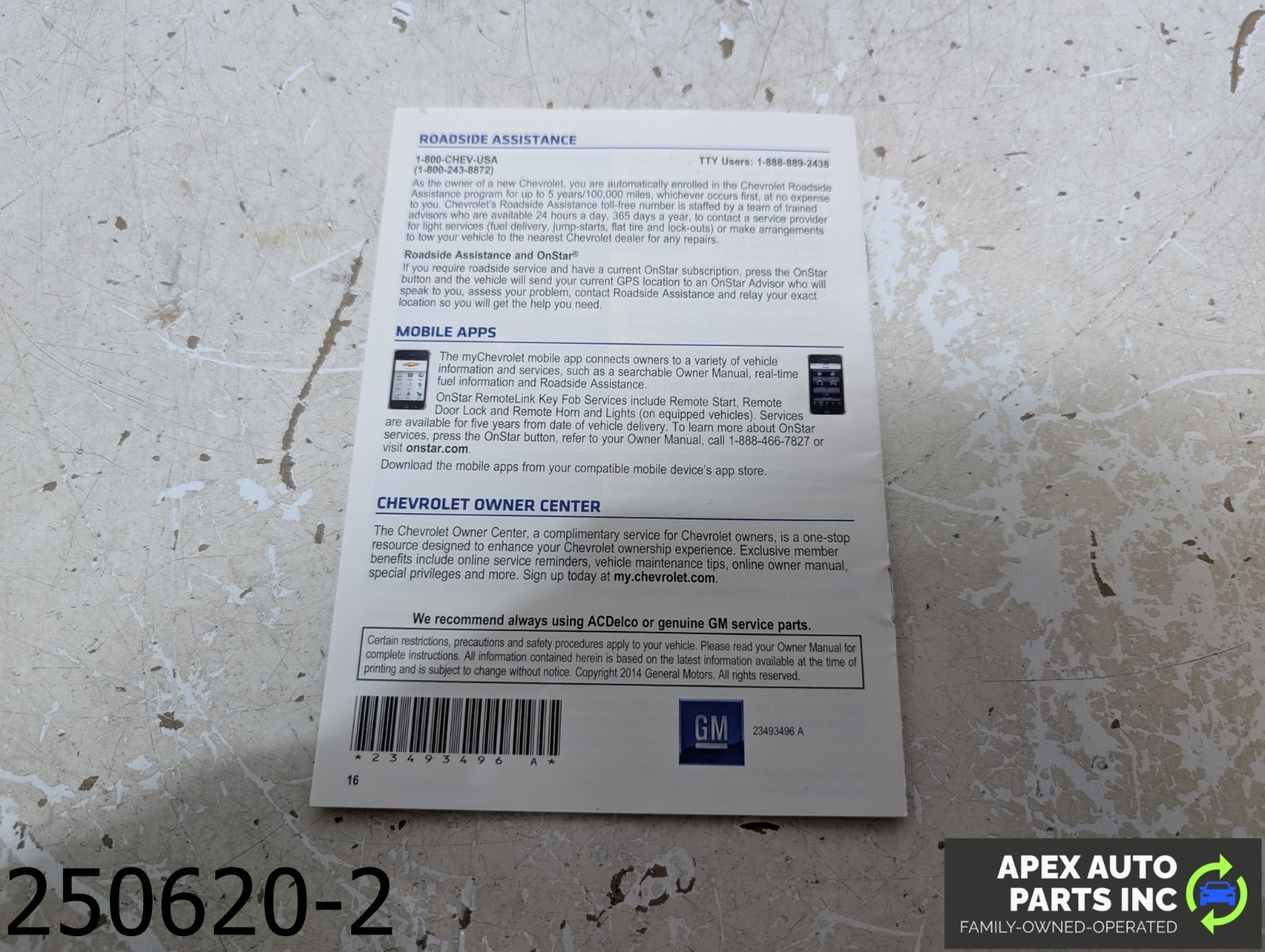 OEM 2013-2016 Chevrolet Trax 1.4L Owners Manual Set