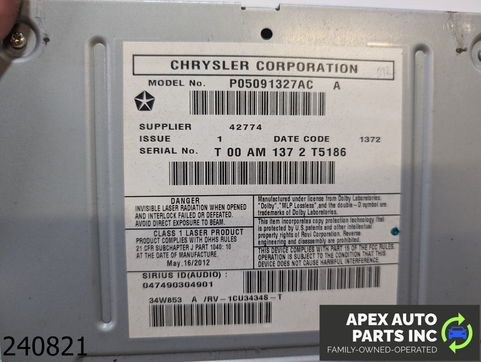 OEM 2013 Chrysler Town & Country 3.6L RADIO MULTIMEDIA SCREEN DISPLAY RECEIVER