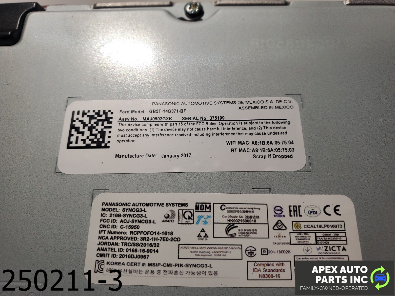 OEM 2017-2019 Ford Escape 1.5L Sync III Audio Radio Communication Control Module